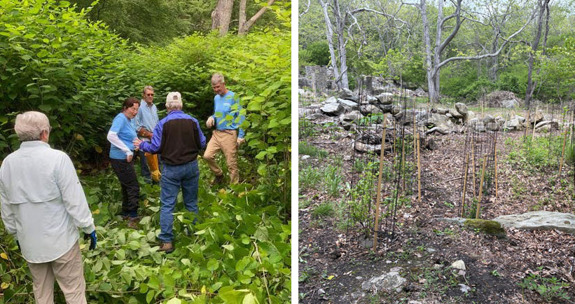 GOSA continues tackling invasive plants such as Japanese Knotweed and Bittersweet vine on all our properties, and working to encourage the growth of native habitats. After removing more than an acre of knotweed at the corner of Flanders Rd and Rt 1, this year we planted 140 native trees and shrubs along with native grasses and wildflowers. In 2026, we are planning a major project to restore 8 overgrown acres by the parking area at Sheep Farm North.